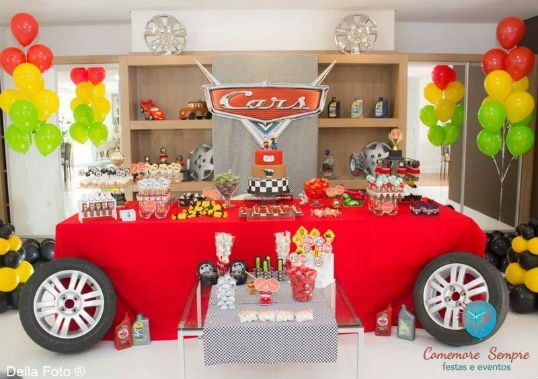 You can make or use as many things as possible to decorate the table that can match with the decoration of the car race theme. You can make sure of things in red colour and also in black and white colors for the birthday theme. They go perfect with that theme.